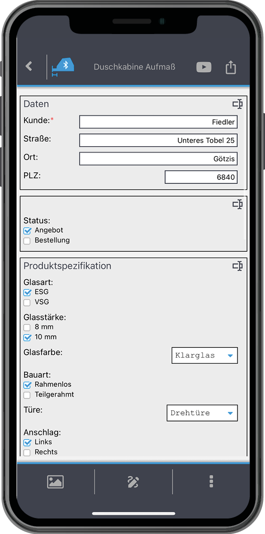 - Kundendaten & Maße direkt am Smartphone oder Tablet erfassen