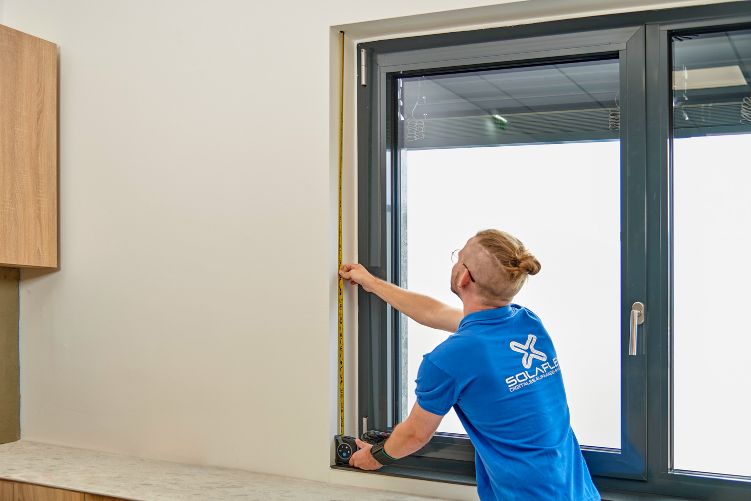 Digital measurement set for windows & doors: Measure, transfer data, save time. The Solaflex RLX combines a digital tape measure and a laser distance meter in one compact device. For flexible measurements of short and long distances with direct transfer to the Solaflex measuring app – ideal for fast, flexible work on site.